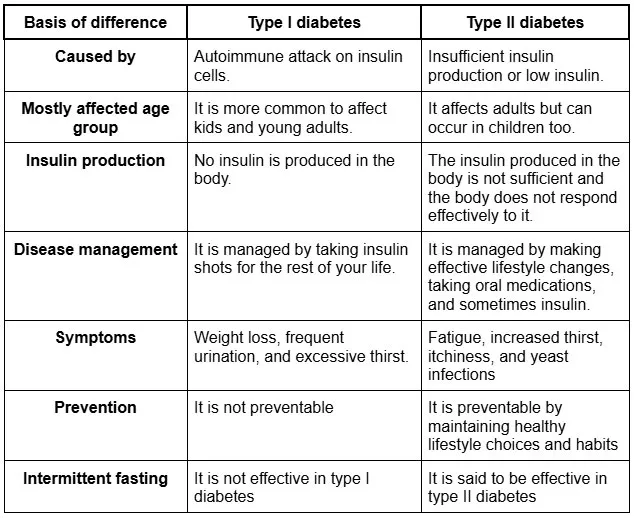 Difference between type I and type II diabetes